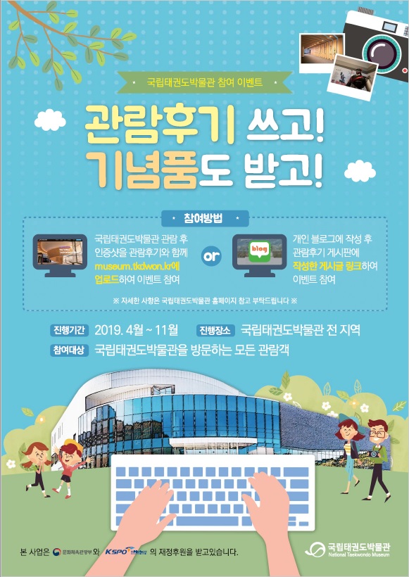 2019년 4월부터 11월까지 태권도박물관 관람후기 이벤트를 실시합니다.