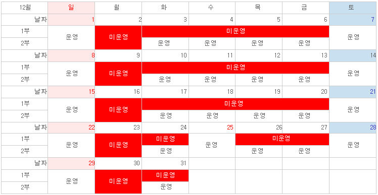 2019년 12월 태권도원 상설프로그램 안내입니다.