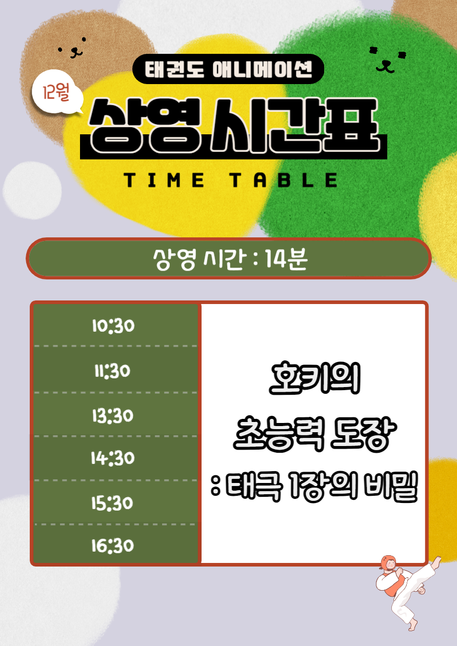 [지난일정] 2023년 12월 태권도 애니메이션 상영 계획