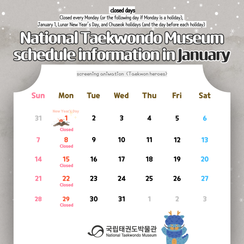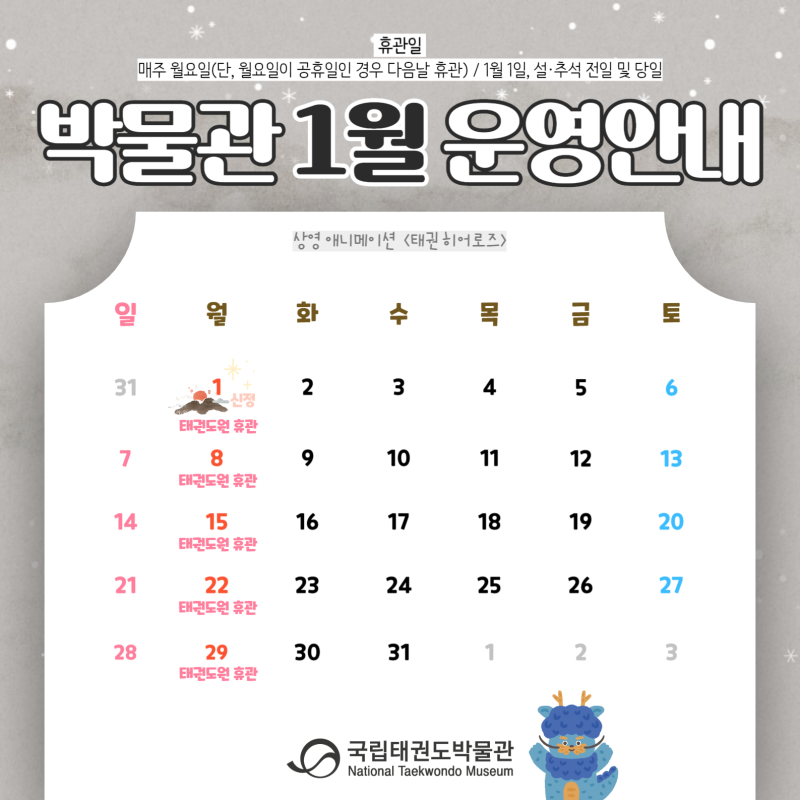 [지난일정] 2024년 1월 국립태권도박물관 운영 일정