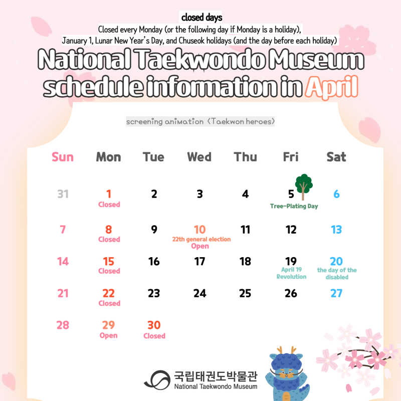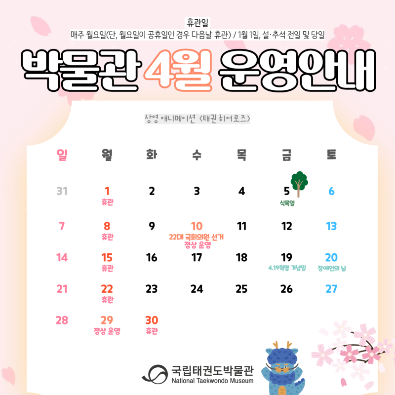 [지난일정] 2024년 4월 국립태권도박물관 운영 일정
