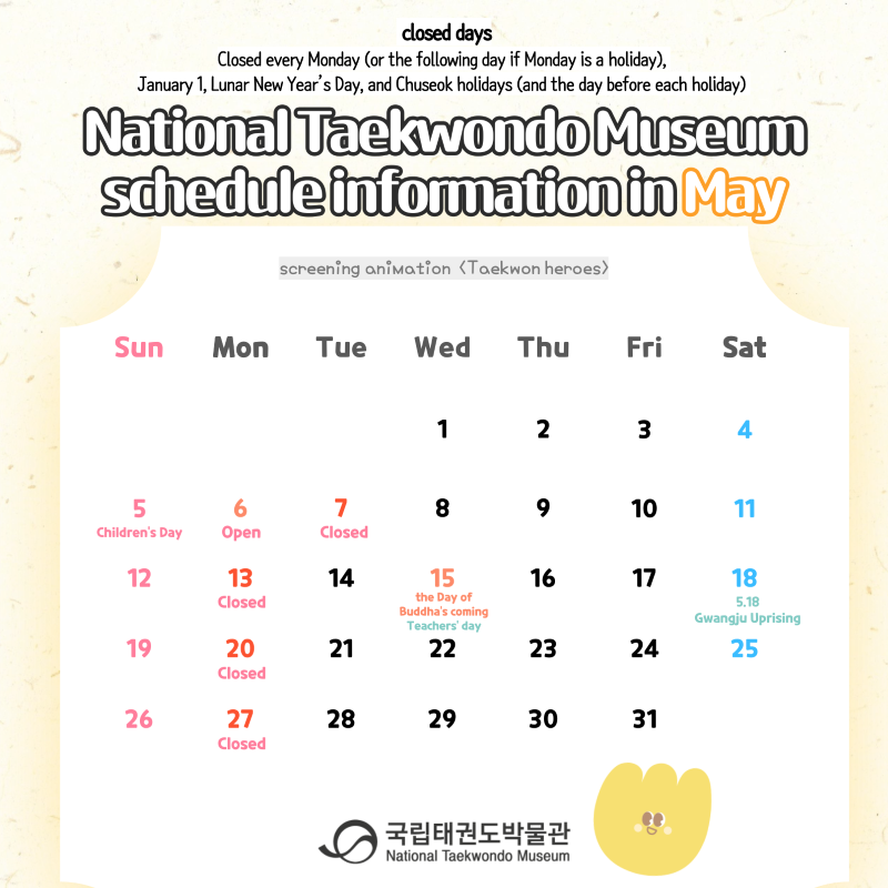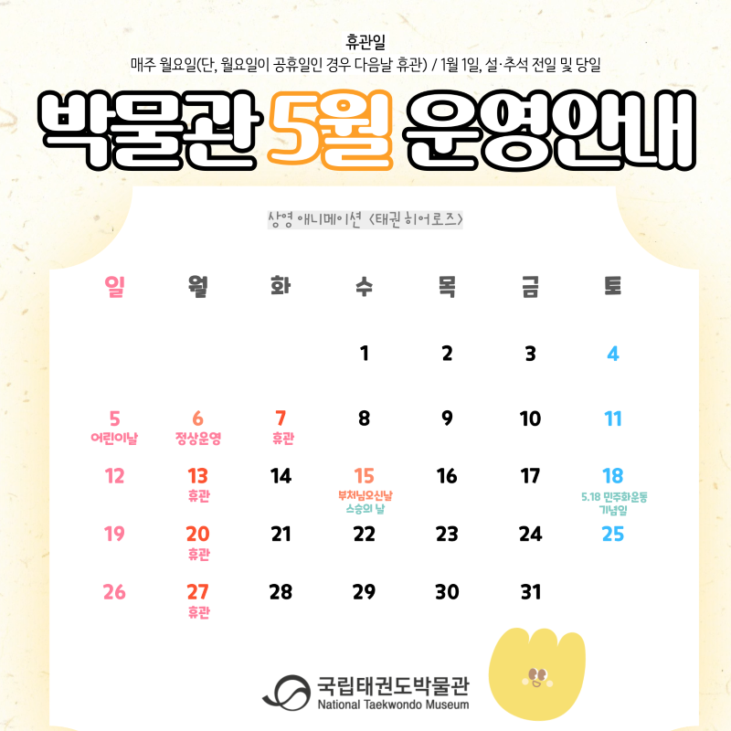 [지난일정] 2024년 5월 국립태권도박물관 운영 일정