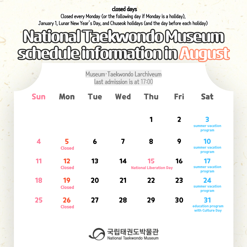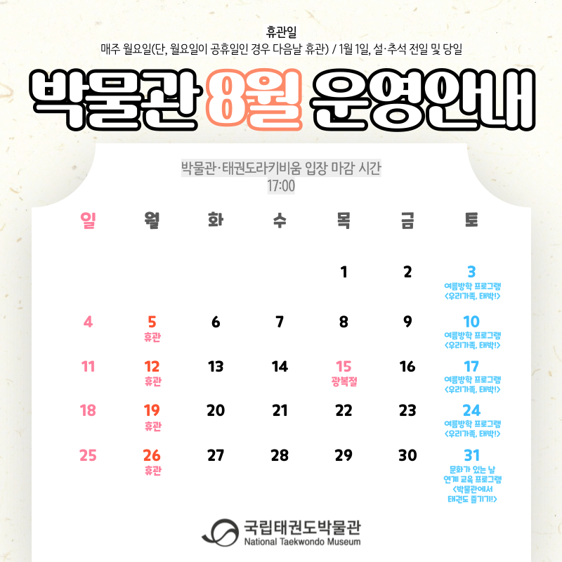 [지난일정] 2024년 8월 국립태권도박물관 운영 일정