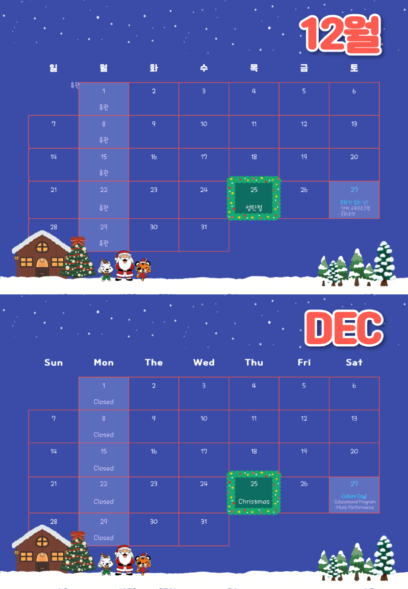 * 9월부터 12월까지는 문화공연도 함께 진행됩니다.